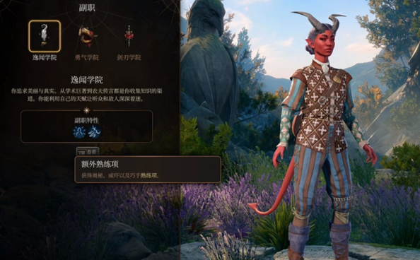 3、吟游诗人三级可以在逸闻学院、勇气学院、剑刃学院三个副职中任选一个,这里建议选择逸闻学院,属于纯法系。
