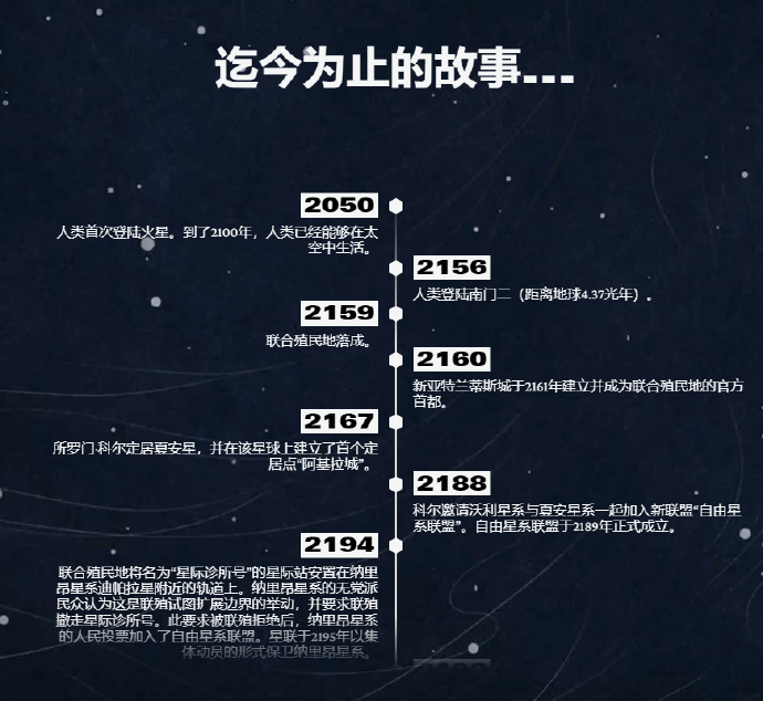 《星空》官网今日公开了游戏从2050年至2328年的世界观时间线。