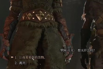 2、随后和罗阿月光生意人会话,然后点击【让我看看你的货品】,就能逐渐与他买卖交易。