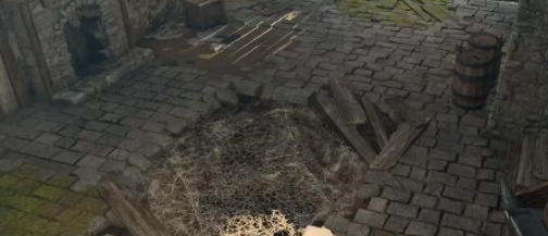 2、找到【地精】后,进到【地精】所属边上的【简陋的房子】里,找到被【蛛网】覆盖前去【别墅地下室】通道。