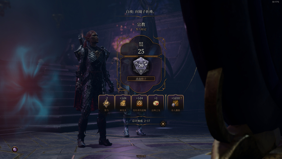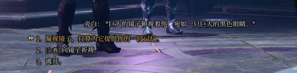 还有就是具体的选哪个选项给属性的概率不好说,下面向镜子祈祷那个dc25的宗教检定有什么效果也不好说,感觉是必须要先过才能拿到+2。这样就必须拿到贵族记忆的魅力+1再去向镜子祈祷,不然容易亏1点魅力。