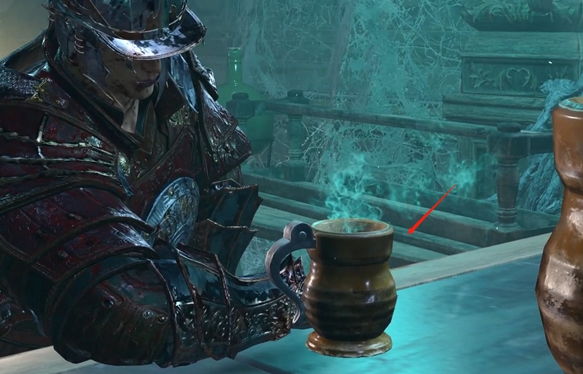 1、来到残月酒厂大酒桶所在地,和他进行友好互动,他给我们倒了一杯冒着绿光的酒,看着有毒其实没毒,我们选择拿起酒杯一口干!