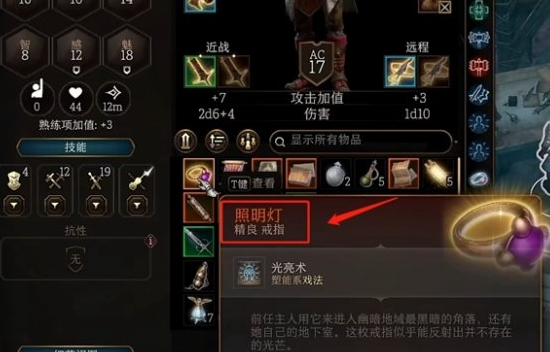 2、照明戒指,可以在奥术塔顶层获取,同时也是通往奥术塔地下室的钥匙。