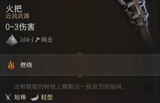 1、火把,既可照明也可砸人,就是伤害较低,照明范围比蜡烛大一些,但是不能直接点燃。