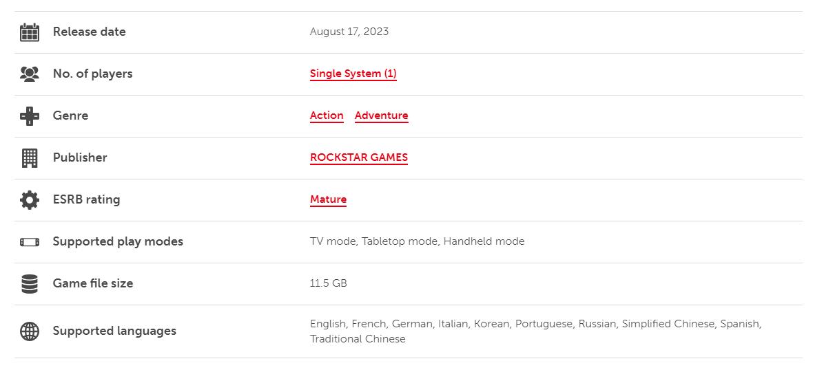 根据任天堂Switch eShop页面显示,Switch版的荒野大镖客:救赎容量大小为11.4GB,这包含了基础游戏和“亡灵梦魇”扩展。荒野大镖客:救赎将于8月17日登陆Switch和PS4,售价50美元。