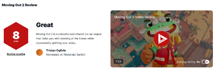 尽管如此,在线多人游戏的加入应该意味着更多的玩家将能够与好友联系在一起,无论他们是否正共享同一个沙发,这有望大大弥补其作为单人游戏体验的长期不足。如果你想与朋友举办一个家庭聚会的话,胡闹搬家2应该是一个很不错的选择。