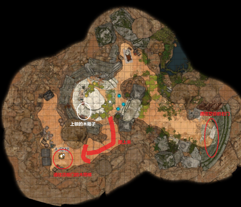 从木爬梯爬出活板门是一个高台,与拉克里萨对话,可以和她打赌能不能顺利到达博德之门。