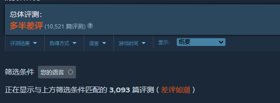 目前在steam的评价是多半差评,近期评价是差评如潮,看来这个游戏真的很让人失望。