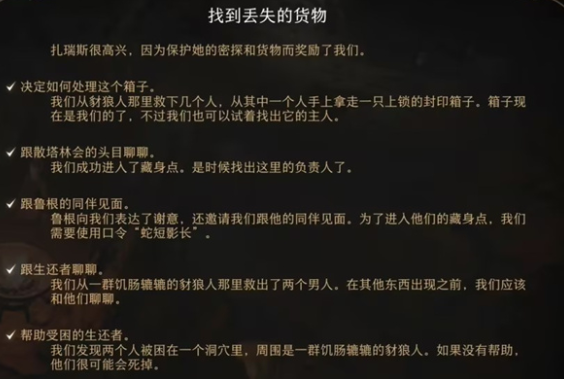 博德之门3前期有一个任务需要玩家找到丢失的货物,很多玩家不知道怎么选择,下面小编为大家带来博德之门3找到丢失的货物完成方法,感兴趣的小伙伴一起了解一下吧。