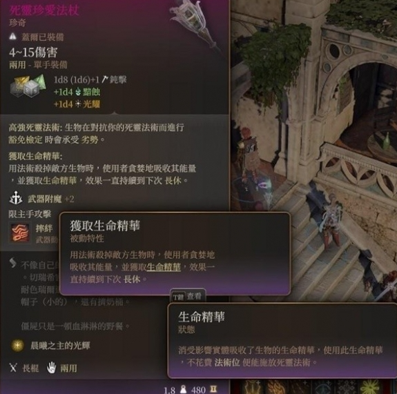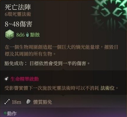 第二个特性生命精华只要杀人就能不消耗法术位放死灵法术,而且这玩意而是可以累积的也就是说一直杀人生命精华会越来越多直到你长休才清除,也就是说越杀人就有越多死灵法术可以放。