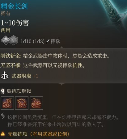 5、如果玩家想选精金武器,建议玩家选择精金长剑。