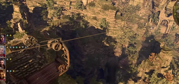2、在特里尔塔峭壁会有一个传送点,玩家往崖边走到尽头,会发现对面山崖上有一个修道院,此时玩家可选择使用旁边的滑索前往或者绕道前往。