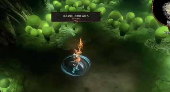 1、在轻语树的位置的北方,会有一处很多绿色蘑菇的地方,中间的商店老板被困在里面。