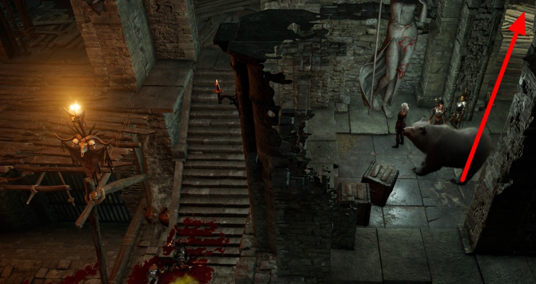 2、首先来到中央大厅,搜寻后会看到三只地精在折磨一只熊;