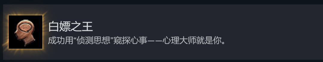 白嫖之王成就说明:成功用“侦测思想”窥探心事一心理大师就是你。