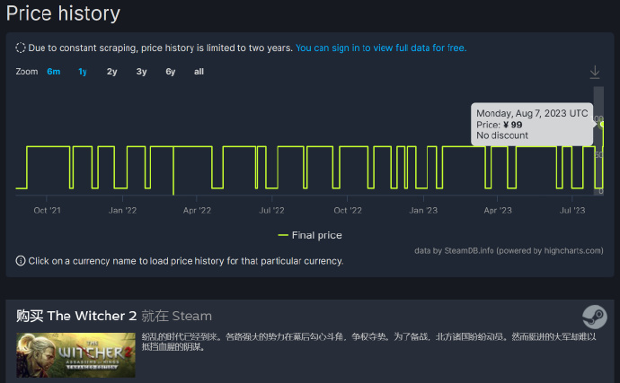 据SteamDB数据显示,CDPR旗下的《巫师2》、《巫师3》国区Steam昨日迎来了价格上涨。