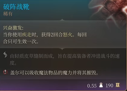在博德之门3的第一章中,有很多稀有级别的装备可供玩家获取。其中,破阵靴是一个非常不错的选择。要获得这双靴子,首先玩家先去座狼兽栏中,玩家可以在第一章的关押哈尔辛的牢房中找到驯兽师扎克的地精,他身上就有这双靴子,点击获得即可。