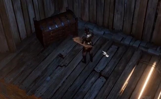 3、玩家需要跳跃到二楼打开箱子就可以获得钢铸剑了。