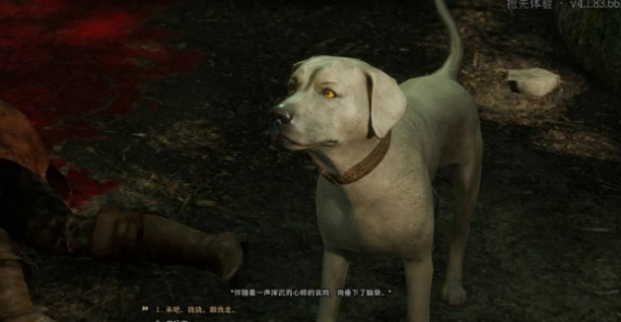 4、这只忠心护主的狗狗叫挠挠,最后让狗嗅到一些味道然后,玩家可以让它前往营地。