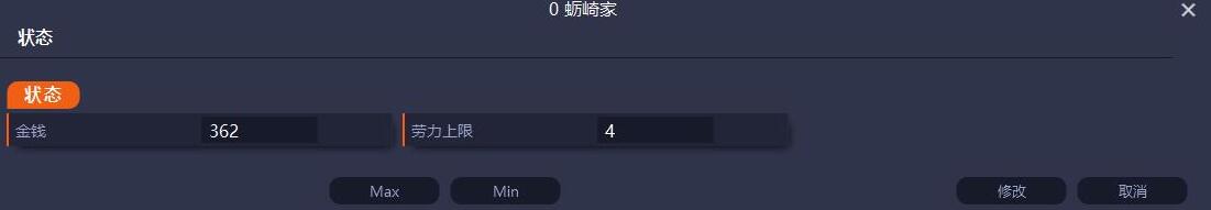 3.打开修改项面板后,玩家可以在状态等栏目下对势力进行数值修改。