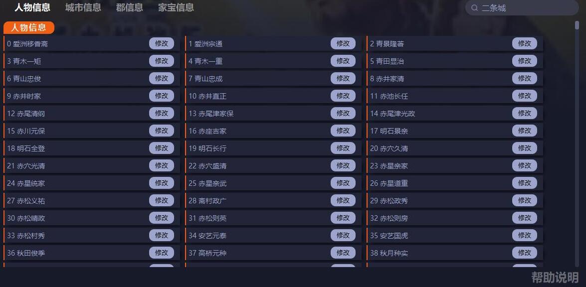 4.大农村等影响石高的聚落,修改数值超过原有上限时会导致城市兵力无限增加。