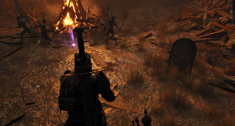 玩家先是需要在第一个火的位置就一直往前走,然后是在前面之中能看到一个石柱。