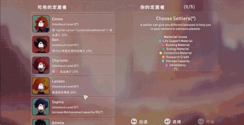 在游戏中,你的移民者是你成功的最重要工具。通过逐步解锁具有不同才华和福利的新移民者,根据你自己的游戏风格和策略选择跟随你的移民者。赚取利润、收集通用信用点也至关重要,这将帮助玩家建造自己的星际飞船,前往更富饶的行星继续扩张。