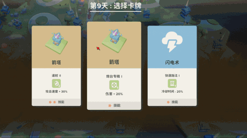 游戏还融入了肉鸽元素,为每一局游戏注入了新鲜感和挑战性。随机的地形、敌人以及隐藏的宝箱奖励,使得每一次游玩都充满了未知和惊喜。而每日的三选一卡牌机制,更是对你的策略灵活性和决策能力提出了严峻的考验。你需要根据手中的卡牌和当前的游戏局势,做出最优的选择。